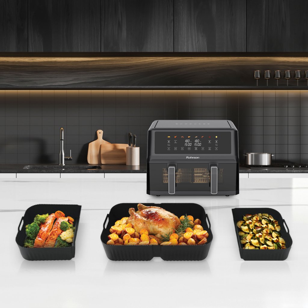 Už žádné zdlouhavé drhnutí koše po vaření! Tyto praktické formy z nepřilnavého a voděodolného papíru jsou navržené přímo pro horkovzdušné fritézy s jednoduchým i dvojitým košem. Perfektně sedí do většiny běžných fritéz – a vy si můžete užít chutné jídlo bez zbytečného nepořádku. Díky teplotní odolnosti až do 220 °C jsou bezpečné pro pečení i smažení.