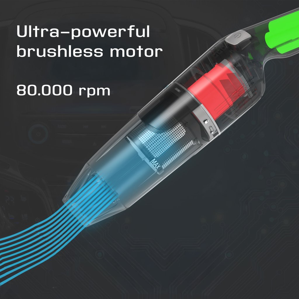 Představte si svobodu luxusního úklidu bez kabelů – tento extra lehký ruční vysavač vás překvapí silou i elegancí. Digitální BLDC motor s precizním chodem rozvíří 80 000 otáček za minutu, aby se pustil do prachu stejně odhodlaně jako do drobků mezi sedadly auta.