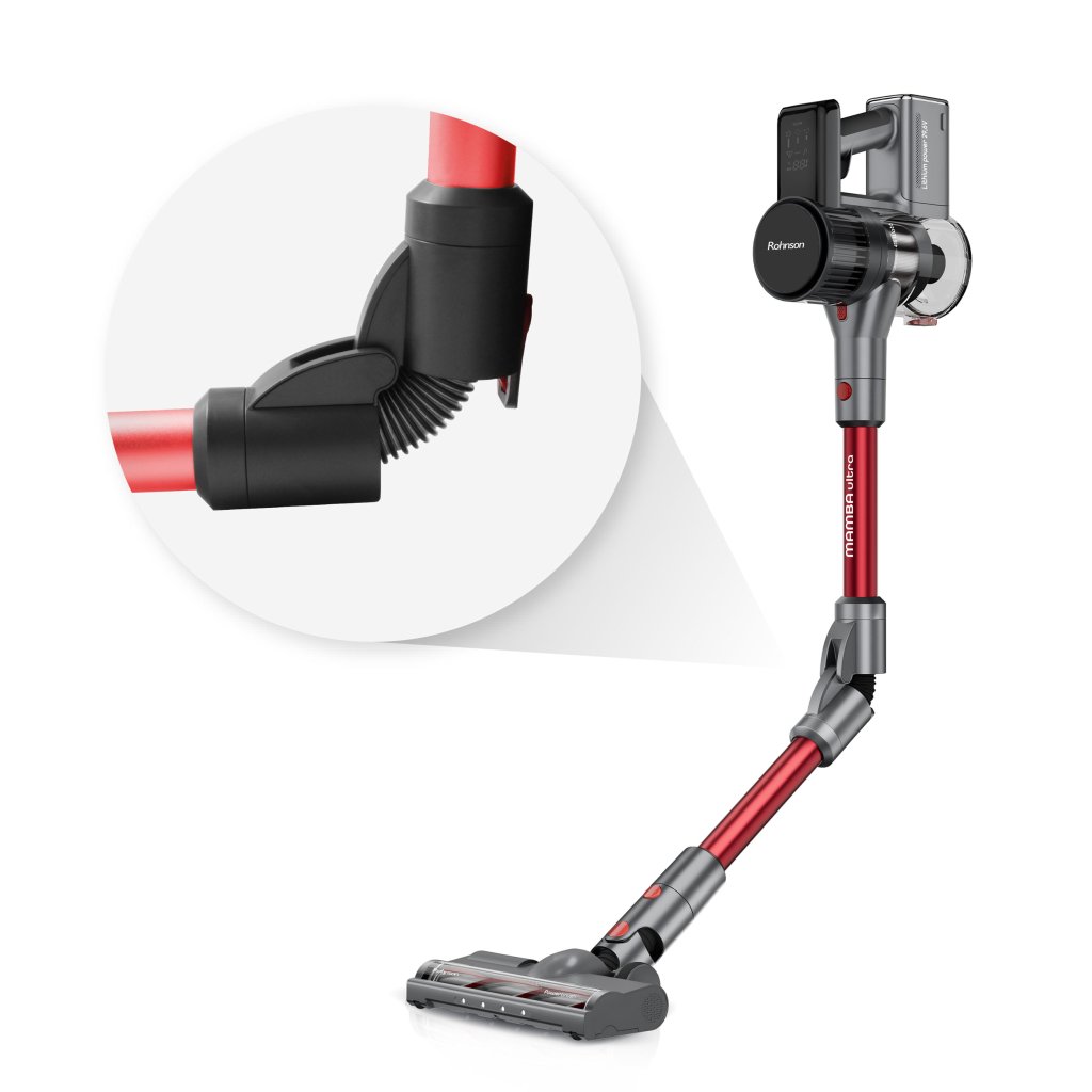 Prachový senzor inteligentně upravuje sací sílu podle aktuální potřeby, zatímco cyklonová bezsáčková technologie zajišťuje efektivní separaci prachu a snadnou údržbu. Flexibilní ohebná trubice umožňuje pohodlný úklid i v těžko dostupných místech.