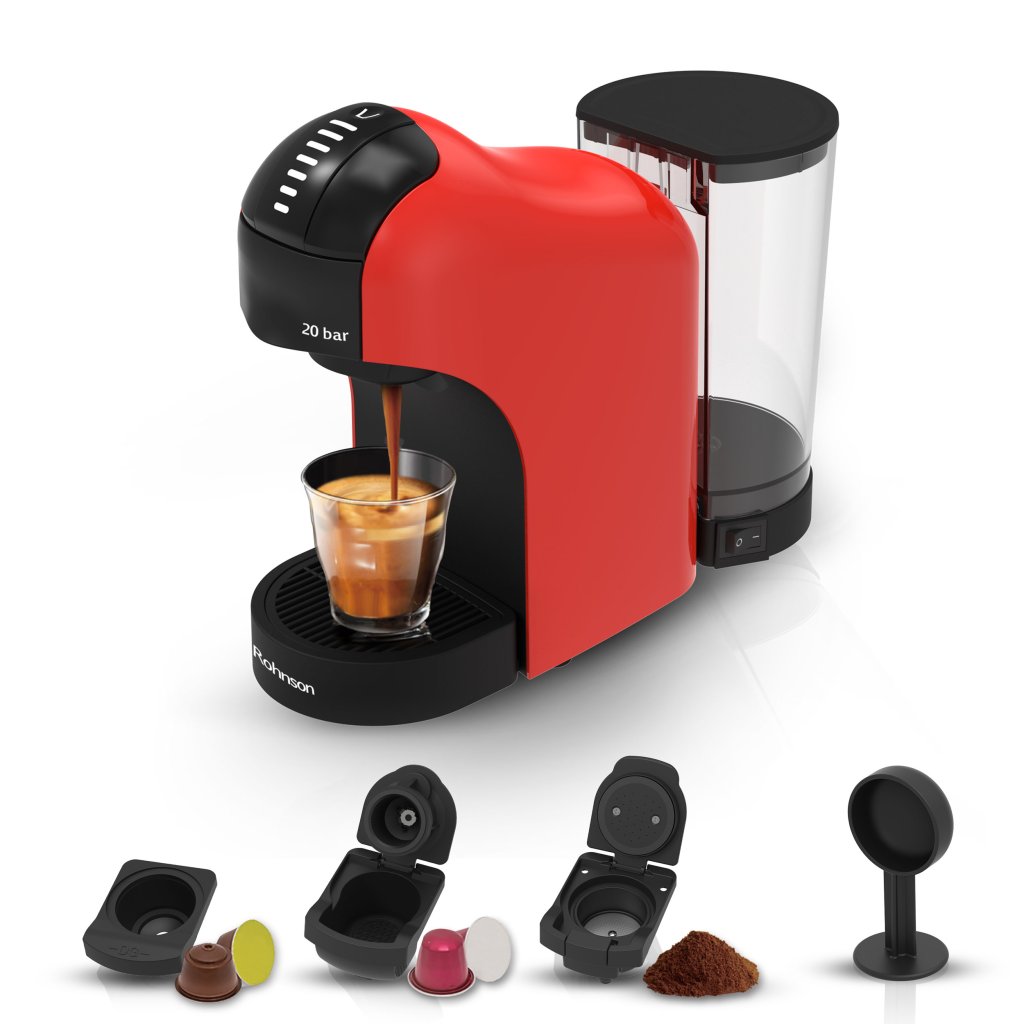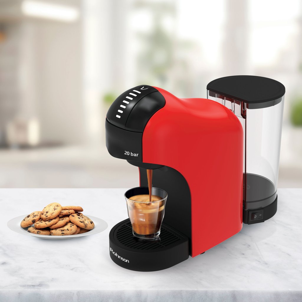 Tento mimořádně kompaktní kávovar překvapí nejen svými rozměry, ale i schopnostmi. Vysokotlaká extrakce 20 barů zajistí bohatou cremu a výrazné aroma, ať už zvolíte kapsli Nespresso®, Dolce Gusto® nebo mletou kávu. Přizpůsobte si objem nápoje podle chuti – na výběr máte ze sedmi úrovní.