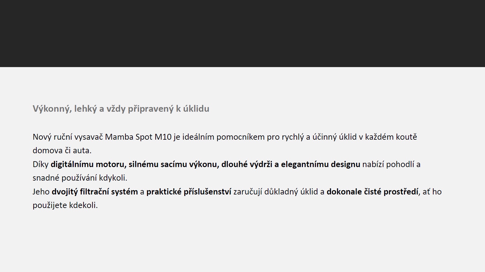 Aku bezsáčkový ruční vysavač M10 Mamba Spot