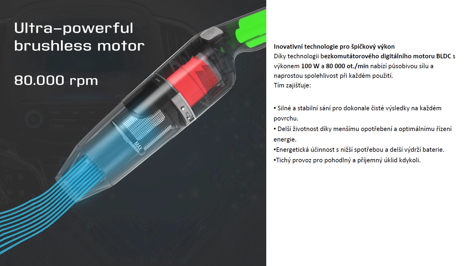 ⚡ Digitální motor 100 W nabízí okamžitý výkon