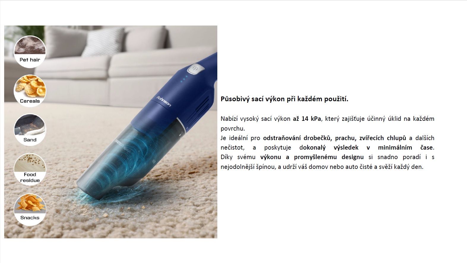 💨 Sací síla 14 kPa spolkne i těžší nečistoty