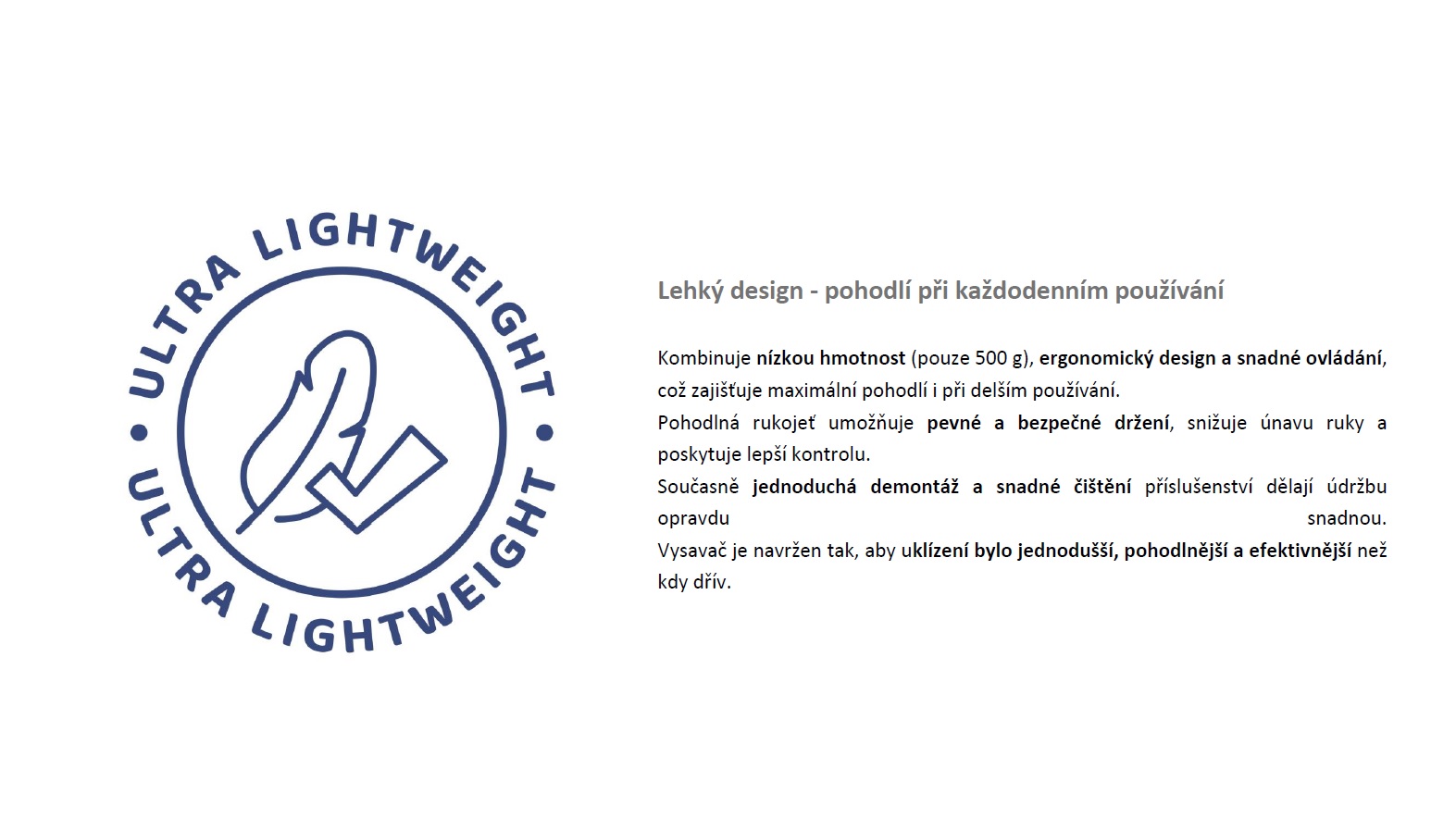 🪶 Ultra lehké tělo šetří vaše zápěstí
