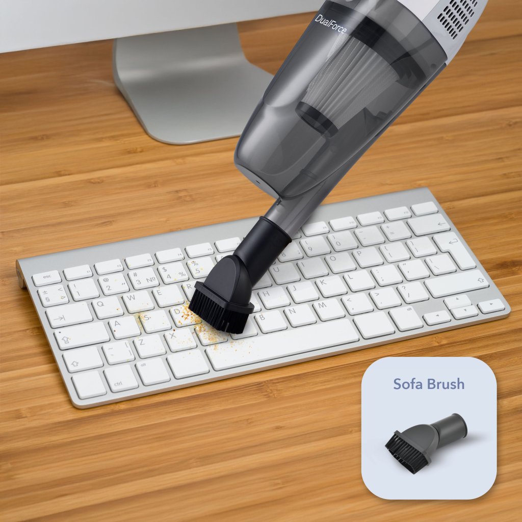 Pokročilý 360° flexibilní kartáčový nástavec se bez námahy přizpůsobí jakémukoli povrchu – od koberců přes tvrdé podlahy až po hladké plochy. Díky nízké hmotnosti se vysavač snadno ovládá, lehce přenáší a pohodlně skladuje i v menším prostoru. Nádoba na prach o objemu 1 l umožňuje delší úklid bez nutnosti častého vyprazdňování a její jednoduchý systém čištění zajišťuje hygienickou údržbu během pár sekund.