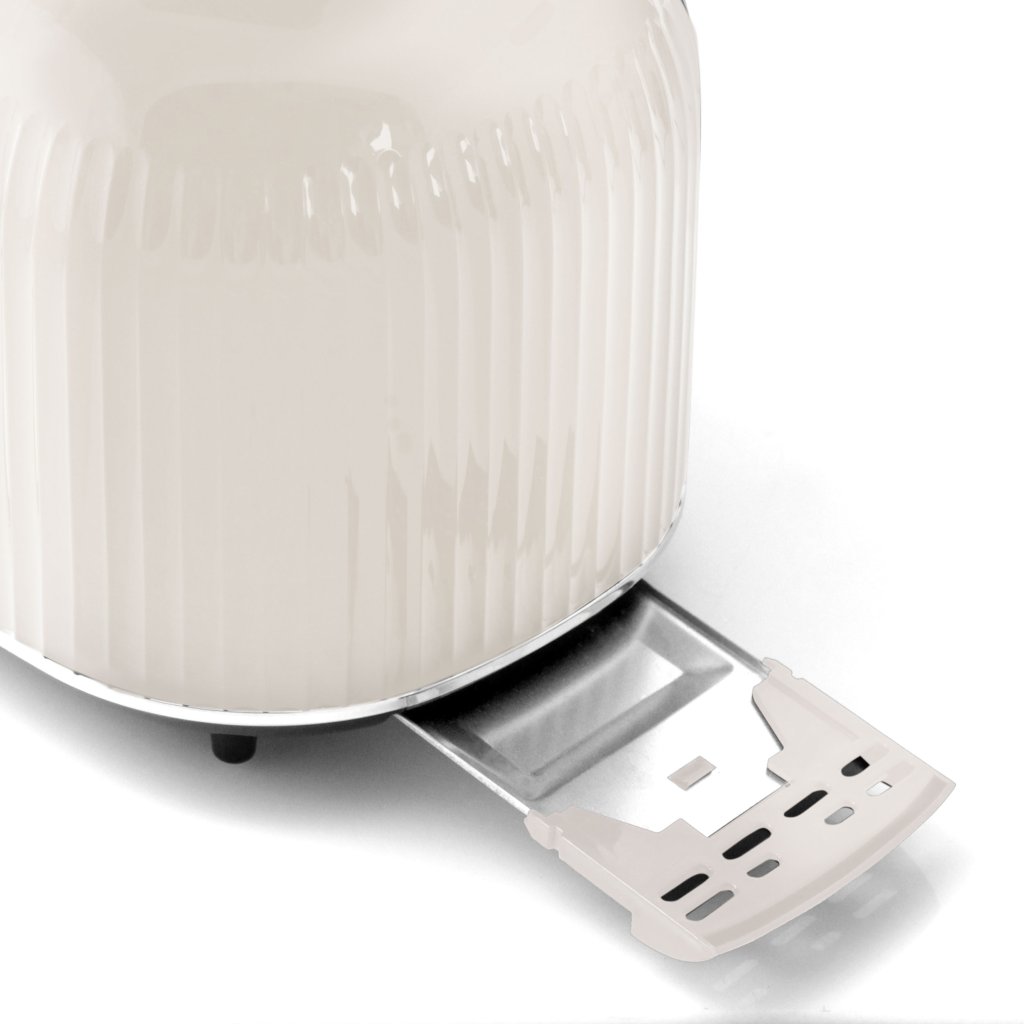 Oceníte i uživatelsky přívětivé prvky – od automatického centrování chleba, které zajistí rovnoměrné opečení, po výsuvnou misku na drobky pro snadné čištění. Stabilitu na kuchyňské lince zajišťují protiskluzové nožičky, takže se přístroj nepohne ani o milimetr.