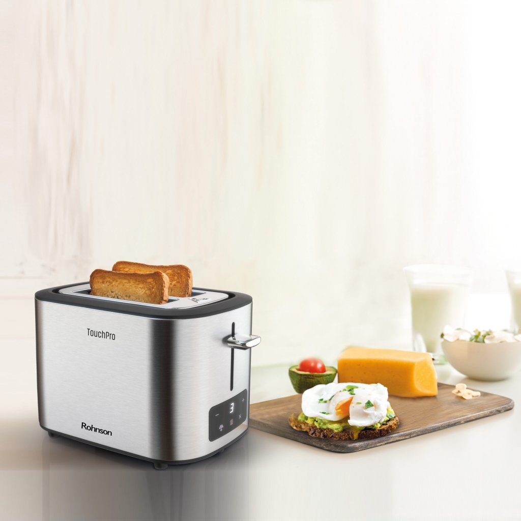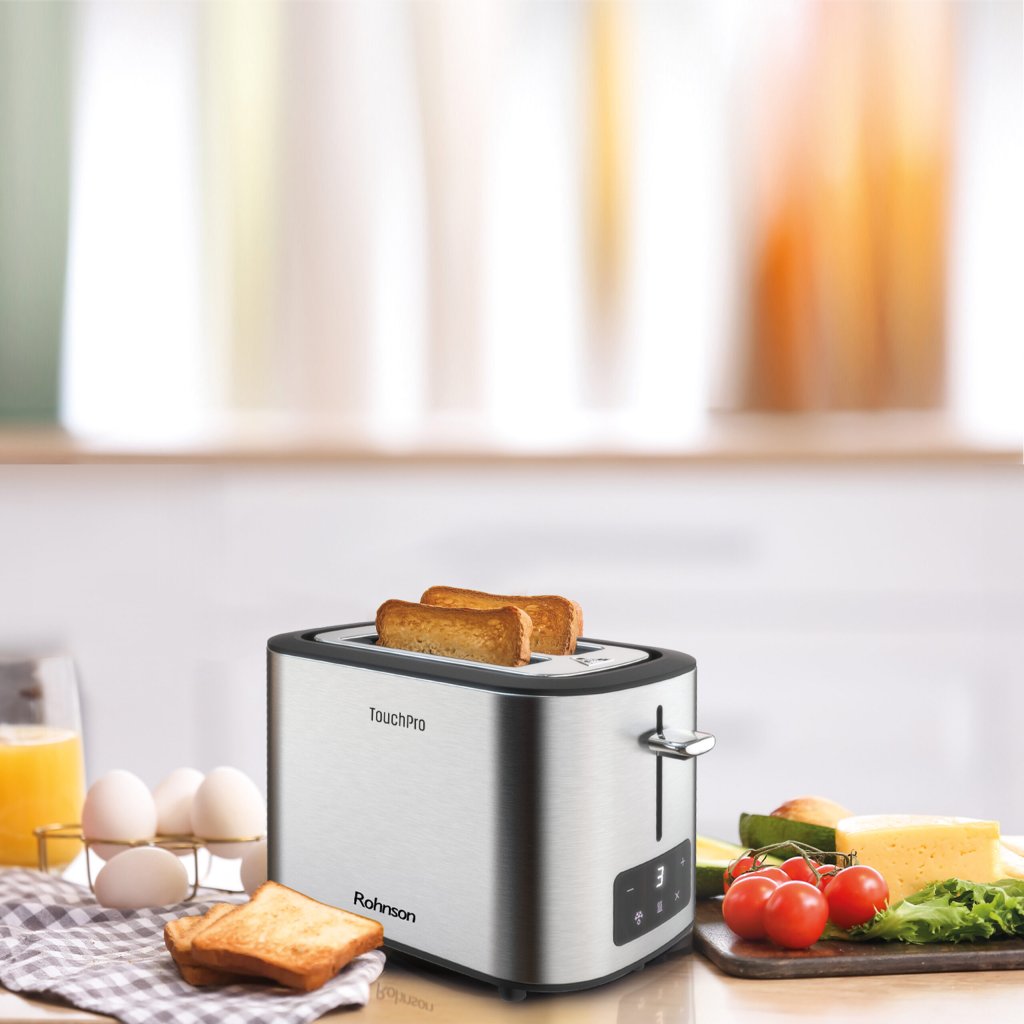 Tento elegantní topinkovač s dotykovým ovládáním ti každé ráno připraví dokonale křupavou snídani přesně podle chuti. Díky širokým otvorům zvládne i silnější plátky chleba a paměť nastavení ti usnadní život – nemusíš pokaždé vše znovu nastavovat. Stylový nerezový povrch navíc zůstává stále čistý, bez viditelných otisků.