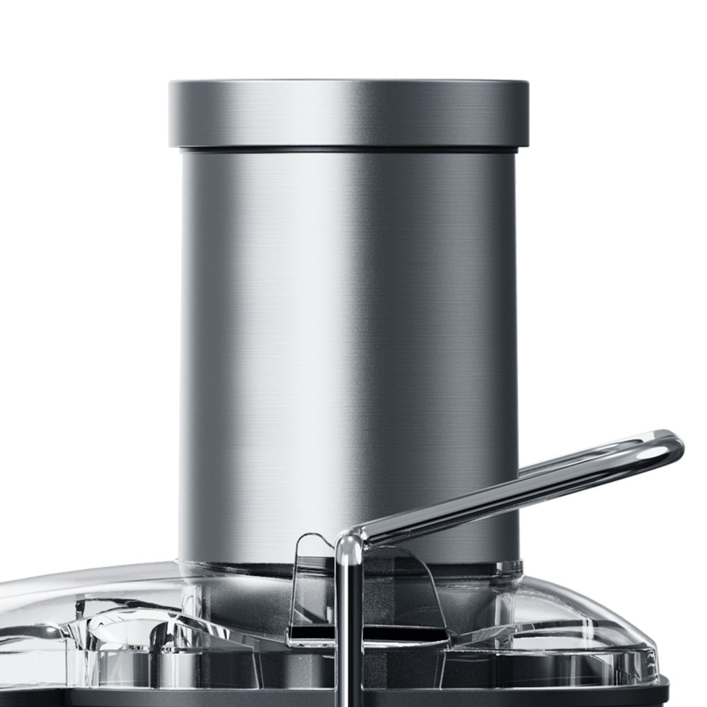 Odšťavňovač je vybaven litrovou nádobou na džus se separátorem pěny a velkou 2,5litrovou nádobou na odpad, díky čemuž pohodlně připravíte šťávu i pro celou rodinu. Odnímatelné nerezové sítko lze snadno vyjmout a umýt, což výrazně usnadňuje údržbu.