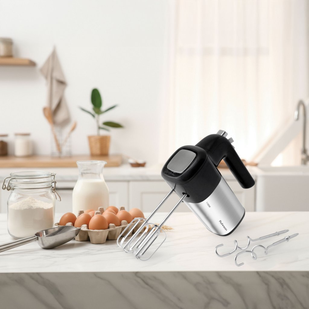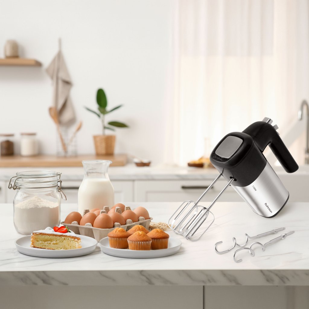 Objevte sílu a preciznost v jednom s naším ručním šlehačem Rohnson, který vám usnadní přípravu dezertů, těst i krémů. Díky výkonnému motoru s maximálním příkonem až 1100 W zvládne bez námahy vše od lehké šlehačky po hutné kynuté těsto.