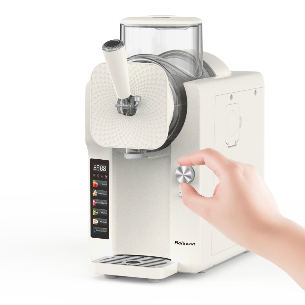 R-5650 nabízí širokou paletu automatických programů, které uspokojí všechny chutě. Připravíte si klasickou měkkou zmrzlinu, ledovou tříšť, studené nápoje, mléčné koktejly nebo i ledovou tříšť s alkoholem. Díky speciálnímu režimu čištění je odstranění zbytků snadné. Dotykové ovládání s přehledným LED displejem zajistí intuitivní práci – stačí zvolit program a výrobník se postará o zbytek.