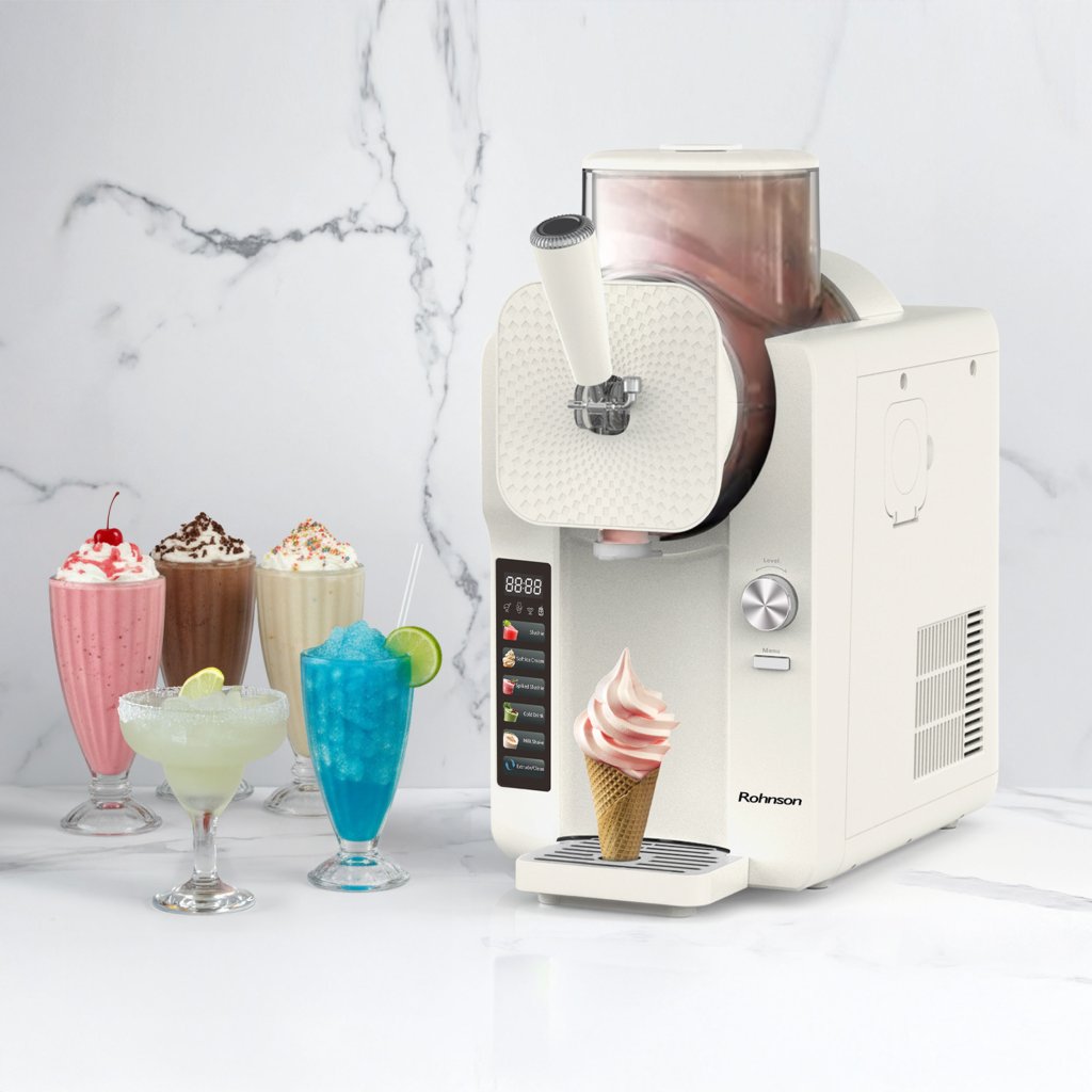 - Všestranný pomocník: Nejen měkká zmrzlina! Připravte si osvěžující ledovou tříšť, mléčné koktejly, studený nápoj nebo stylovou ledovou tříšť pro dospělé.