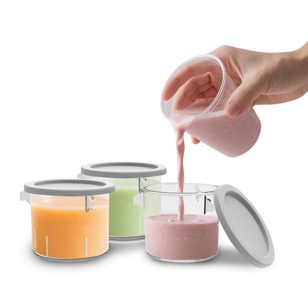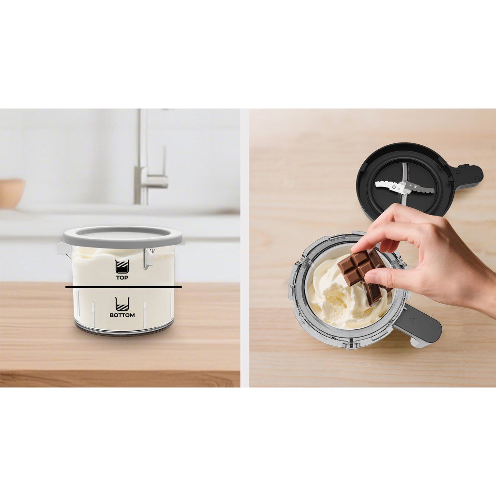 Tři odnímatelné nádoby o objemu 500 ml (celkem 1,5 l) umožní připravit různé příchutě najednou – ideální pro celou rodinu. Všechny nádoby i nože jsou bez BPA a lze je pohodlně mýt v myčce. Funkce automatického čištění navíc zjednodušuje údržbu na minimum.