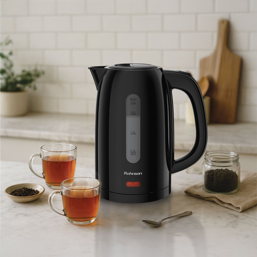 Rychlovarná konvice R-7038 přináší dokonalé spojení elegantního designu, rychlého ohřevu a maximální bezpečnosti pro každodenní použití. S objemem 1,7 l zvládne připravit horkou vodu pro celou rodinu nebo návštěvu během chvilky. Přesný ukazatel hladiny vody umožňuje jednoduché dávkování a manuální otevírání víka usnadňuje plnění i čištění.