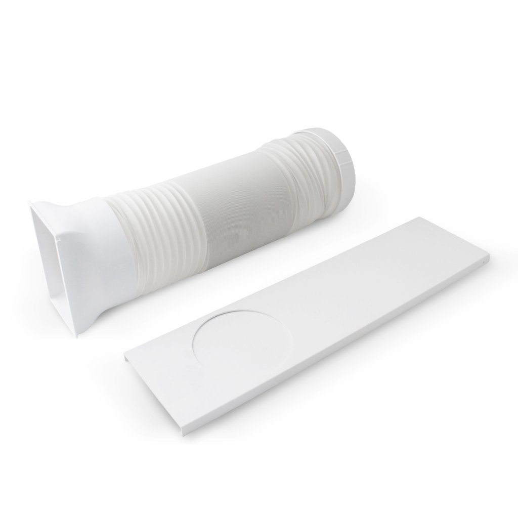 Součástí balení je dálkové ovládání včetně baterie CR2025, flexibilní hadice pro odvod horkého vzduchu s nastavitelnou délkou od 24 do 150 cm a konektor pro snadné připojení hadice ke klimatizační jednotce. Díky kompaktním rozměrům je klimatizace stabilní, snadno přemístitelná a vhodná pro domácnosti, kanceláře i provozovny.