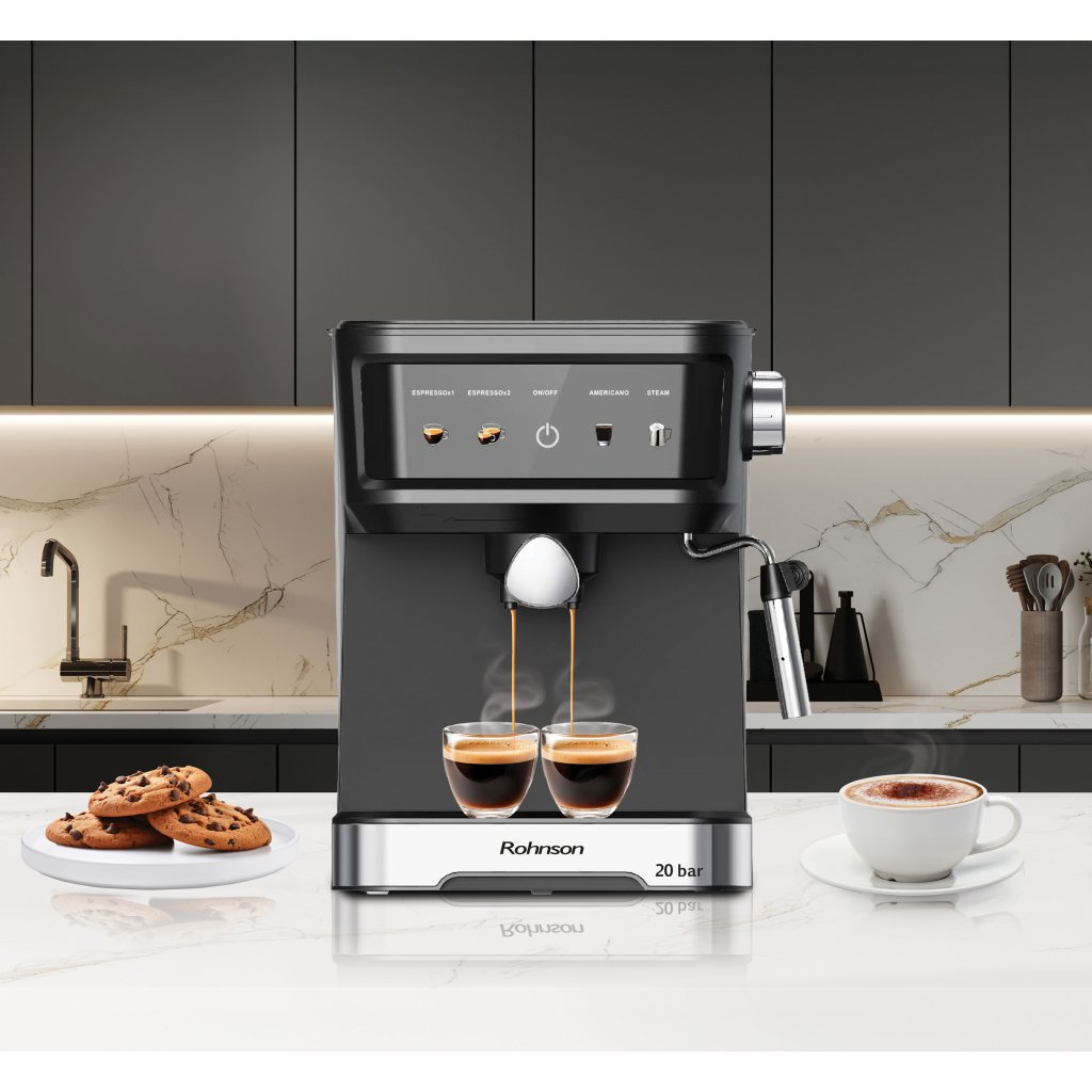 Tento kávovar zaujme na první pohled – moderní LED dotykový panel, čistý design a technologie, které z něj dělají silného hráče ve světě domácí přípravy kávy. Díky vysokotlaké extrakci 20 barů a systému dvojité kontroly teploty NTC a PID je každý šálek precizně připravený, s bohatou pěnou a plnou chutí jako z kavárny.