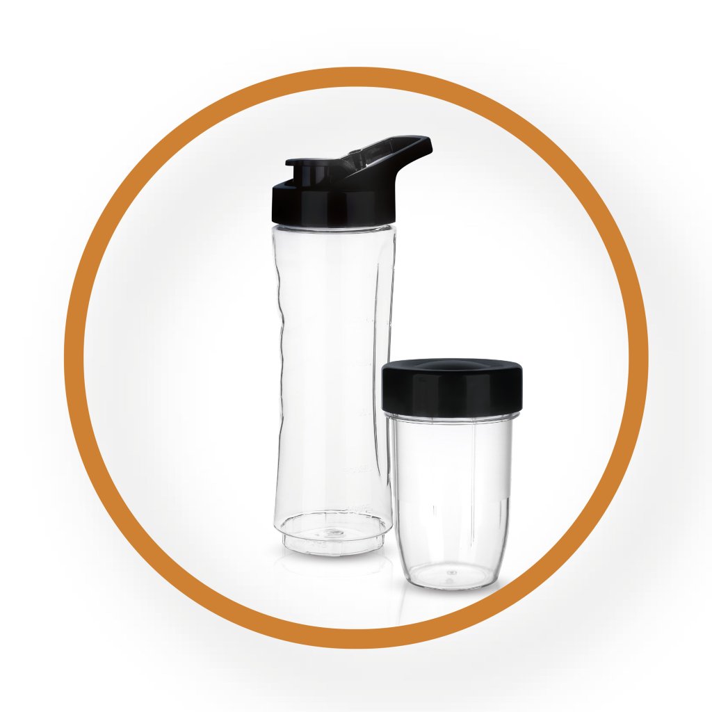 Praktické příslušenství mixéru zahrnuje také menší nádobu na mletí o objemu 300 ml, která zvládne i ty nejtěžší úkoly, jako je mletí ořechů nebo koření. Tato nádoba je navíc vhodná do myčky, stejně jako BPA free mixovací láhev o objemu 600 ml, což přináší maximální komfort při údržbě. Bezpečnostní mechanismus spolu s protiskluzovými nožičkami zajišťují stabilní a bezpečný provoz, zatímco červená a zelená LED indikace vám vždy jasně ukáže stav zařízení. Navíc nízká hlučnost 50–60 dB vás při vaření neruší a umožňuje příjemné používání mixéru kdykoliv během dne.